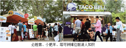 百胜中国旗下品牌必胜客、塔可钟、小肥羊齐齐亮相共青森林公园,让游客们在观赏表演、享受秋日闲暇的同时,可轻松享受新鲜出炉的美食。相信未来游客们会在更多元化的户外场景中体验餐车“即拿即走”的便捷,享受百胜中国更多独具匠心的美味。