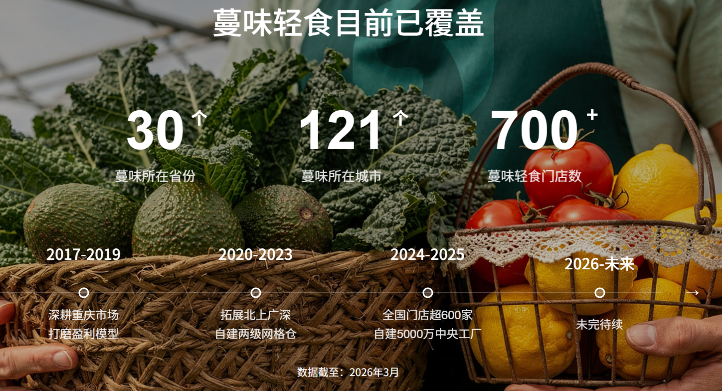 自2022年完成全国标准化供应链搭建后,蔓味实现了统一生产、统一配送与全链条品质管控。这不仅确保了从东北到海南的任一门店,消费者都能享受到品质、口味、分量高度一致的餐品,更从源头保障了食材的新鲜与安全,解决了轻食行业最关键的品控难题。
